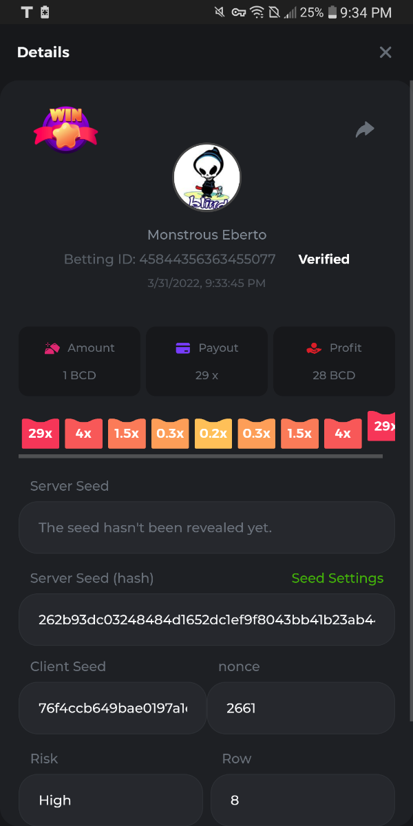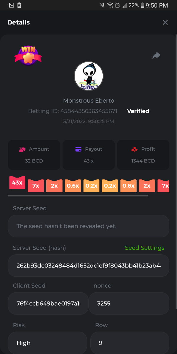 8. In case anyone finds these helpful. Low Risk Payouts; Classic Risk Payouts; Medium Risk Payouts; High Risk Payouts; If you spot any mistakes please let me know and ill fix it really quick. I've double checked multiple times and i dont see any myself. Should be good to go. Gonna post them in Keno section as well.