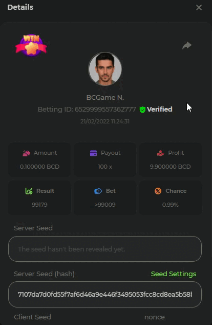 $1k Prestige Hash Dice Challenge #18 Hey everyone! This week the eighteenth Prestige will be in our in-house Hash Dice, with a total prize pool of $1000. The top 10 players who achieve the highest payouts will share a share of the prize pool. Also, we're grateful to all players who participate in our weekly events and will share 30% equally with everyone who completes the valid entry. What's the Challenge? Win the highest possible payout in our in-house game Hash Dice, and all participants who complete the minimum requirements will receive an equal share of the 30% prize pool. If a participant submits more than 1 entry for the same game, only the highest multiplier will count. If there is a tie, the player with the higher average bet amount (in USD) shall be the winner. Minimum VIP There's no minimum VIP level Minimum Payout Minimum payout to qualify is 25x Minimum Bet Size $0.10 USD equivalent Eligible Coins All coins are eligible (excepting JB) Available Prizes 1st Place....... $300 2nd Place..... $150 3rd Place...... $70 4th Place......$50 5th Place......$30 6th-10th.........$20 The remaining $300 will be split between all other participants who reach the minimum target multiplier, min bet and minimum VIP. How to Enter To enter, copy the link of the bet you'd like to submit. Once you've copied it, paste it as a reply to this thread like so: Link: https://bc.game/sd/?sd=10EV9HVMAI07BN Below there's an illustrative image with more details. Link: https://bc.game/sd/?sd=10EV9HVMAI07BN Please combine all of your hits together in a SINGLE post. Edit your existing post for additional hits, don't create a new post. Bets must be posted within 24 hours of placing bet in order to keep things fair for everyone. Bets must be made during the specified time window stated above. This thread will lock automatically when the time period is over. One (1) entry per household. Anyone found attempting to win multiple prizes will be disqualified from this challenge as well as all future challenges. Failure to follow instructions will result in your submission being null and void. By entering this challenge, you acknowledge that BC.Game has the final decision on results and placement. Payouts will be made within 72 hours of challenge completion, please be patient, we promise you that we haven't forgotten. We check and double check to make sure the rightful winners receive their prize. Prizes will be paid out in BCD. Best of luck playing!