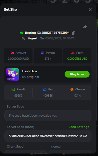 Tente acertar o maior número possível de multiplicadores no Hash-Dice da lista a seguir...