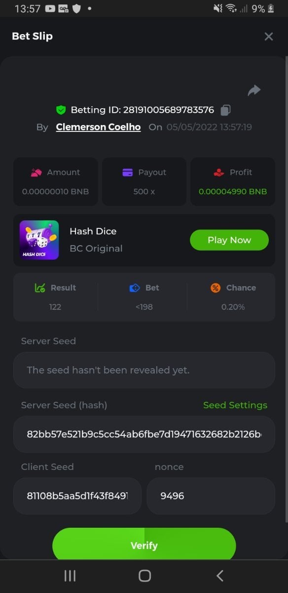 • Na mesma postagem, faça o upload de uma captura de tela de sua vitória clicando no ID do jogo COM VISUALIZAÇÃO NO modo USD ATIVADO (acessível na parte inferior do menu suspenso da sua carteira na parte superior. Dessa forma, podemos garantir que sua aposta realmente atendeu ao requisito mínimo no momento da colocação: